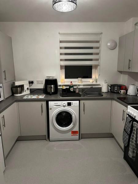 On offer- Large 1 bed upper new build Cala homes flat in Mauricewood, Penicuik. Have decorated the flat to a high standard. Bedroom has huge double built in wardrobe, bathroom with shower over bath and walk in airing cupboard, large storage cupboard in upstairs hallway, small storage cupboard in downstairs hall and another storage cupboard in the kitchen. Also has own rear garden and outdoor storage cupboard. House is through Wheatley Homes East.